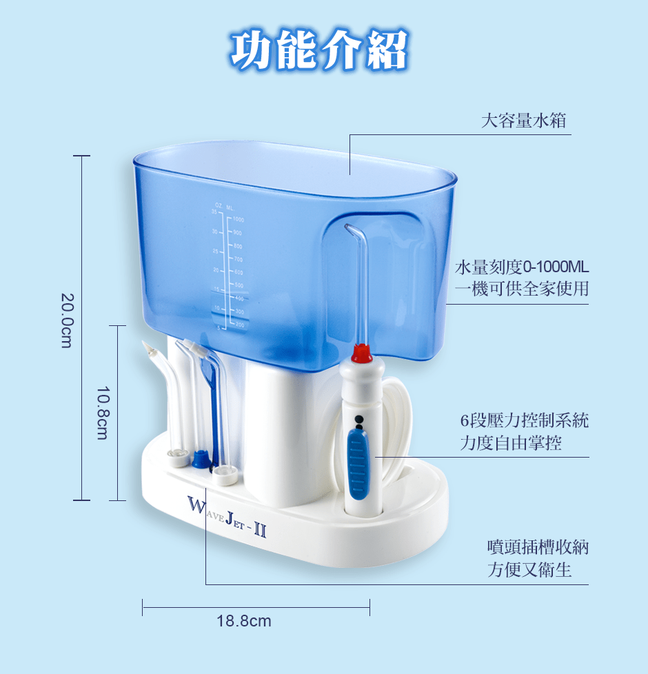 WAVEJET-II 能夠深層清潔牙齒及食物殘渣,有效預防牙周問題和蛀牙的發生。此外,搭配正確刷牙方式,更能夠在短時間內完成全面的口腔清潔,為忙碌的現代生活帶來便利。使用WAVEJET-II沖牙機可以提高口腔衛生,使牙齒更加潔淨健康,同時也提升了生活品質和自信心。